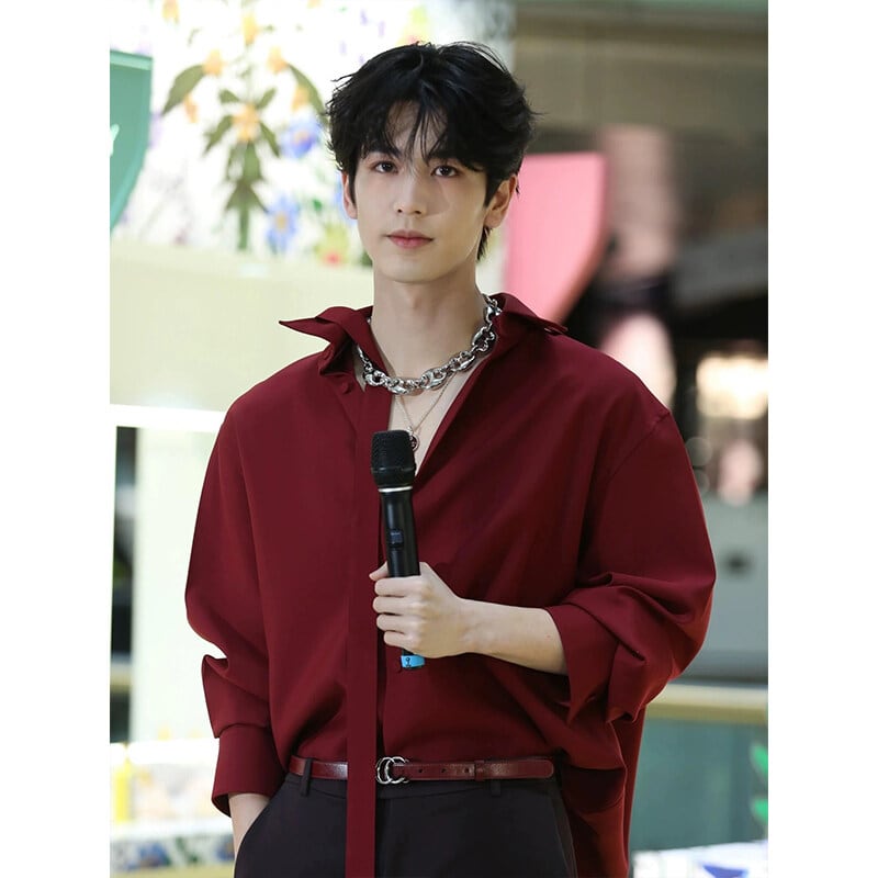 サテンルーズシャツ【韓流メンズスタイル】 ダークレッド