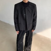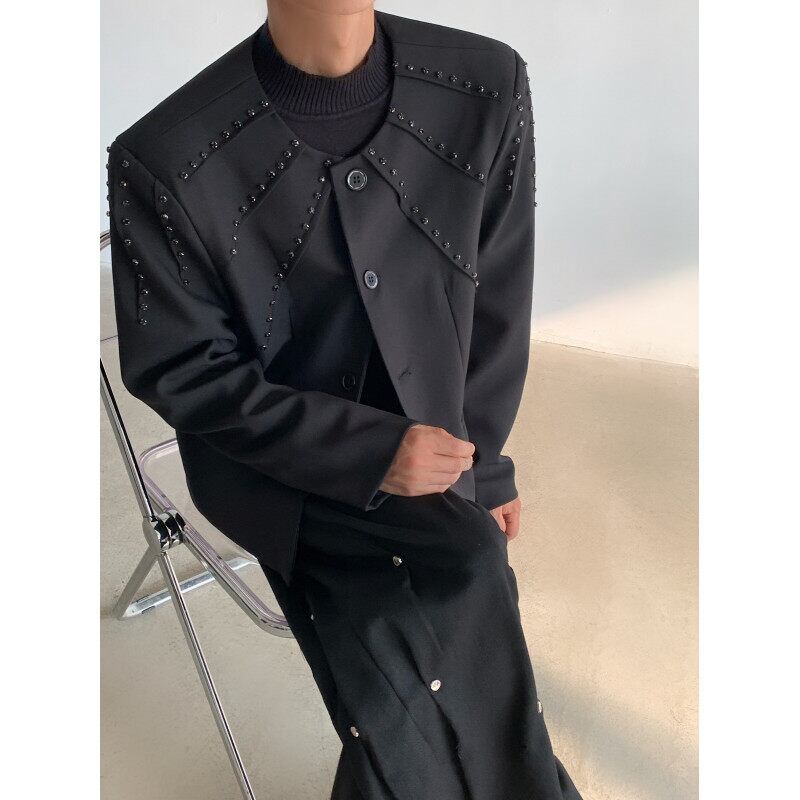 スタッズブラックテーラードジャケット【韓流メンズスタイル】 ラウンドネック