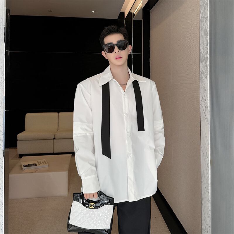 オーバーサイズ ショートスリーブモードシャツ【韓流メンズスタイル】/ブラック/ホワイト