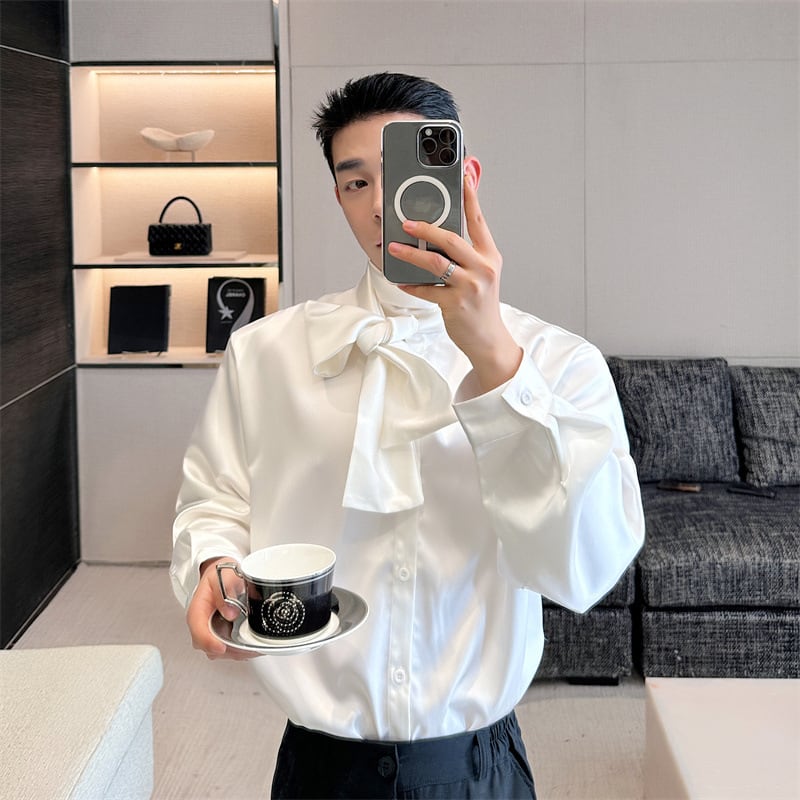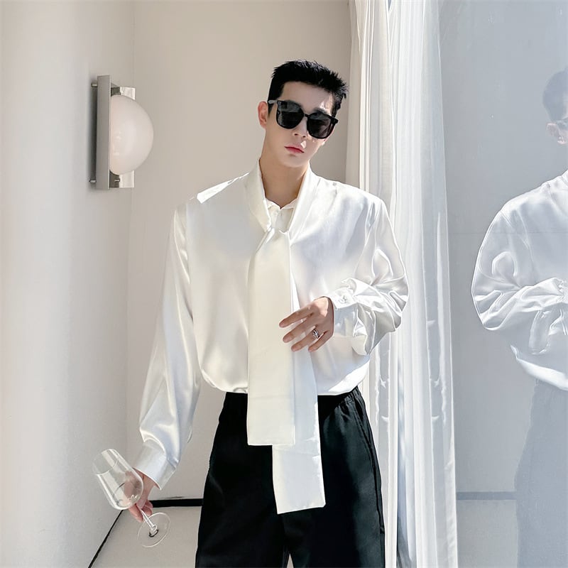 リボンサテン風 セクシーシャツ 【韓流メンズスタイル】