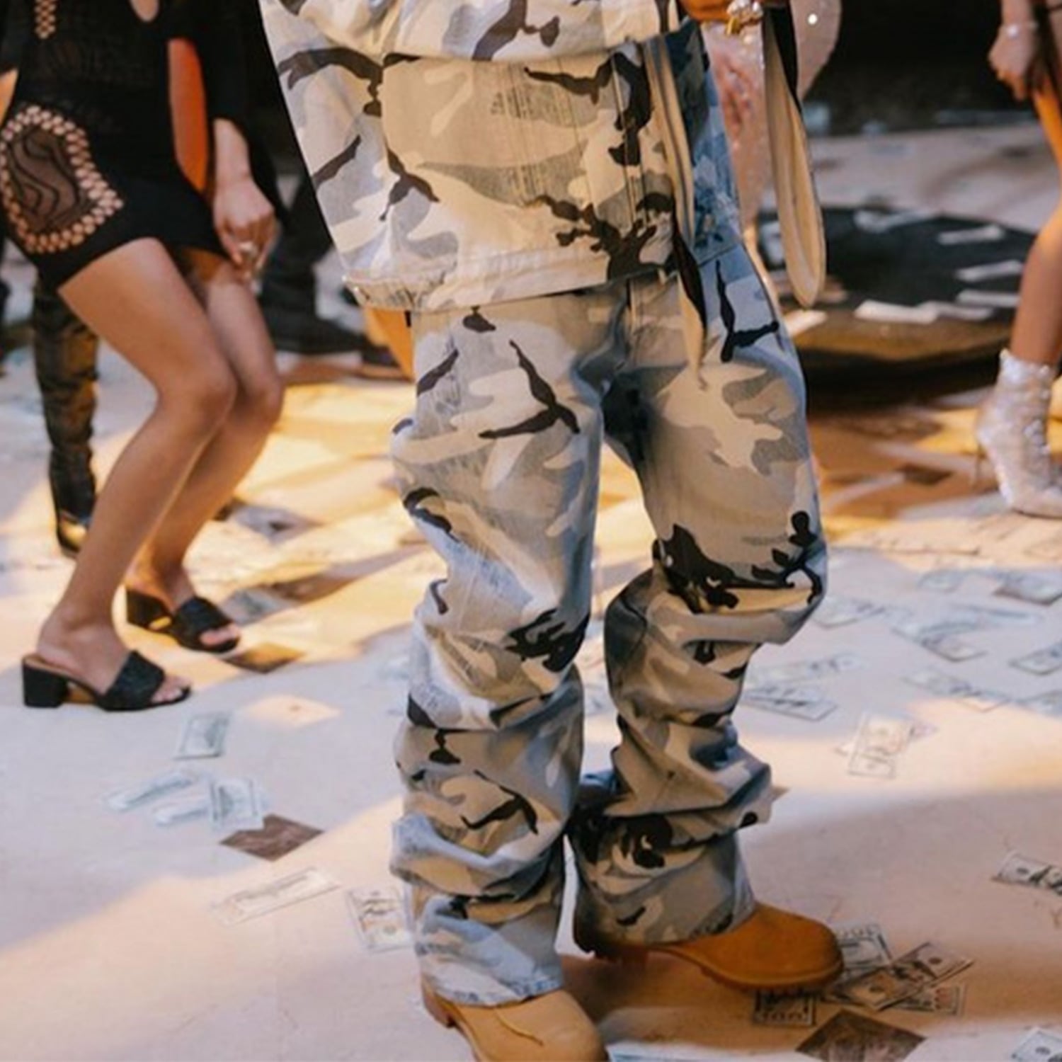 バギールーズワイドデニム【韓流メンズスタイル】スノーカモフラージュ designed by MIJKO