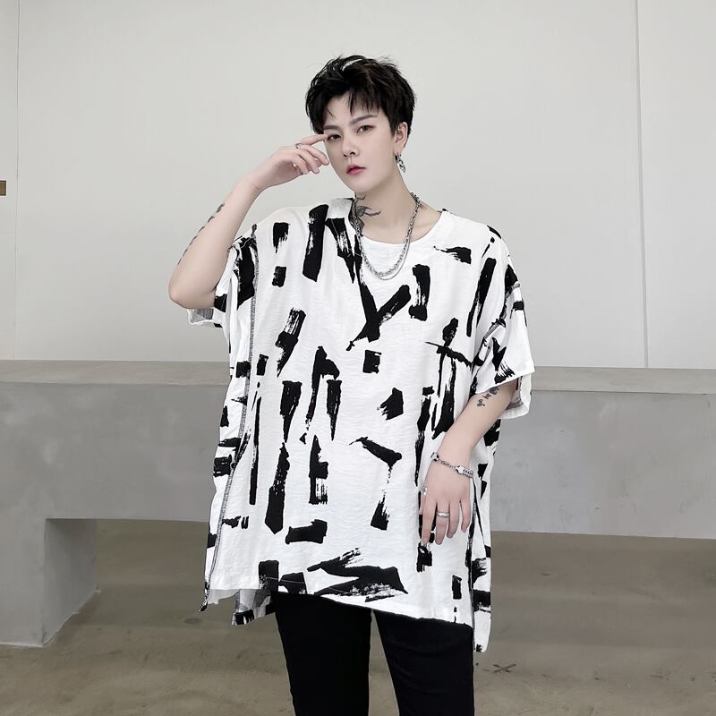 ルーズグラフィックTシャツ【韓流メンズスタイル】白/黒