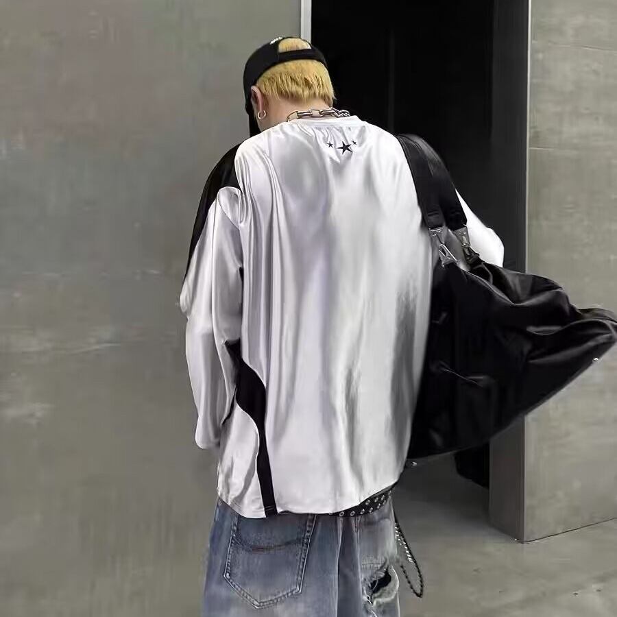 Netmap レディストックアメリカンスタイルシルバーグレーロングスリーブスプリングハイストリート T シャツ W/P