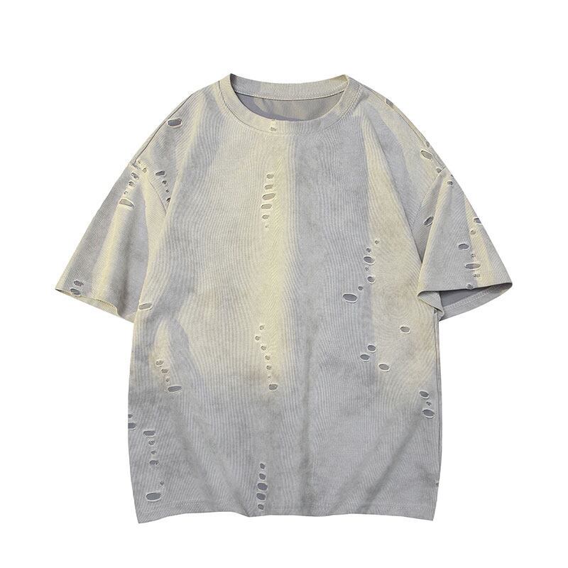 オーバーサイズダメージTシャツ【韓流メンズスタイル】グレー/カーキ/ブルー