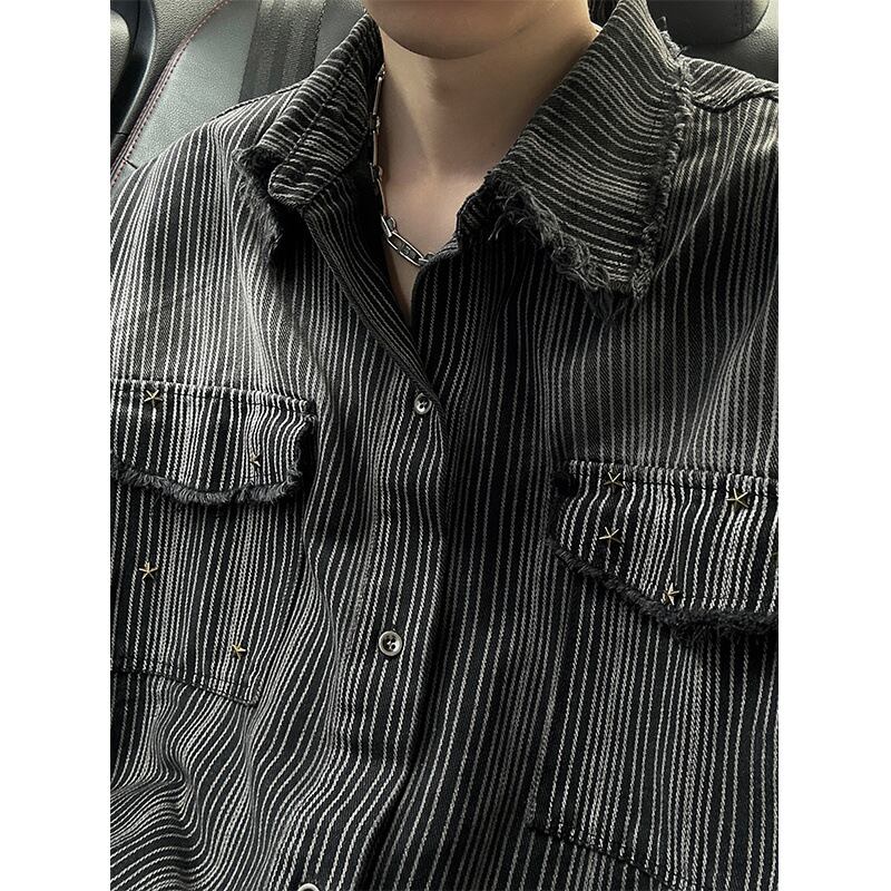 ハイエンドストライプシャツ 長袖シャツジャケット【韓流メンズスタイル】