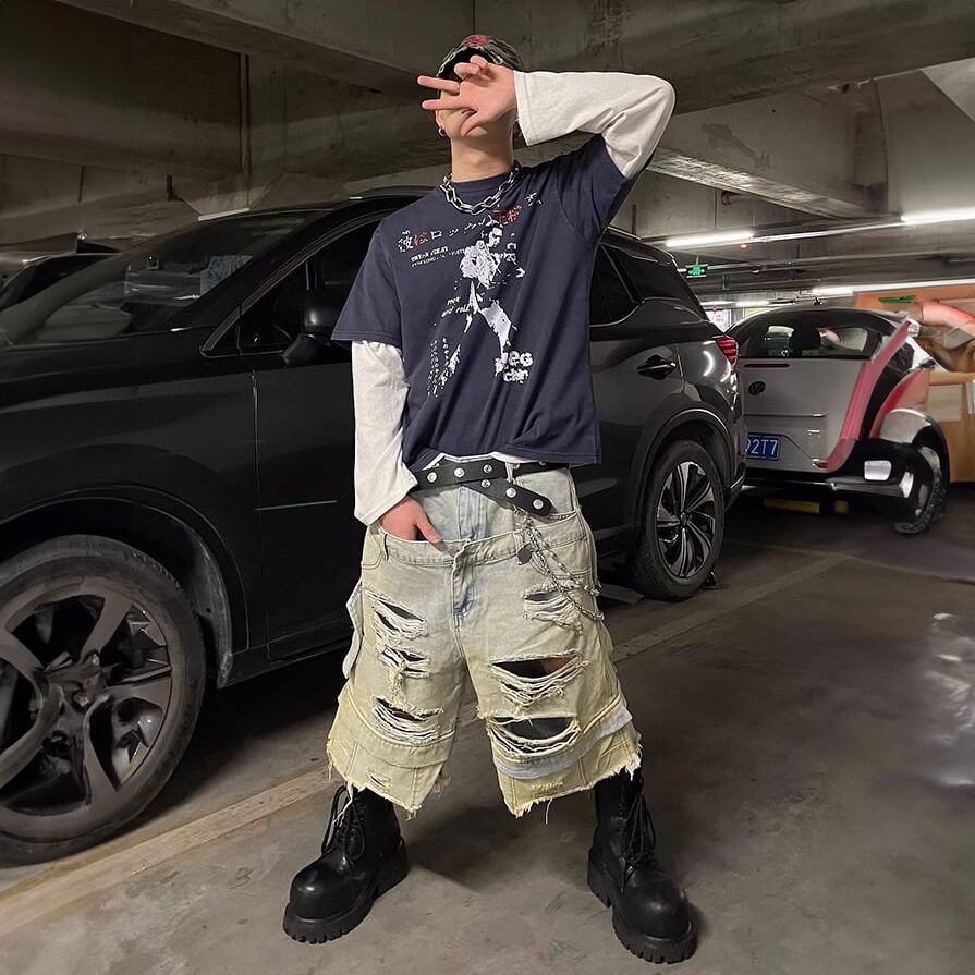 ダブルウエスト デニムショーツ【超韓流メンズスタイル】