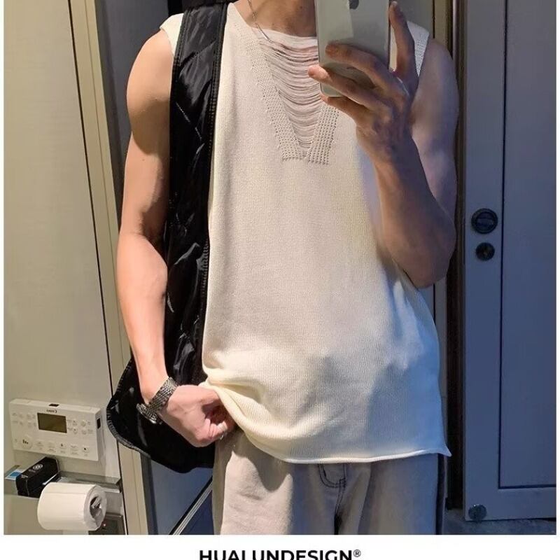 ノースリーブニットベスト【韓流メンズスタイル】ブラック/アプリコット