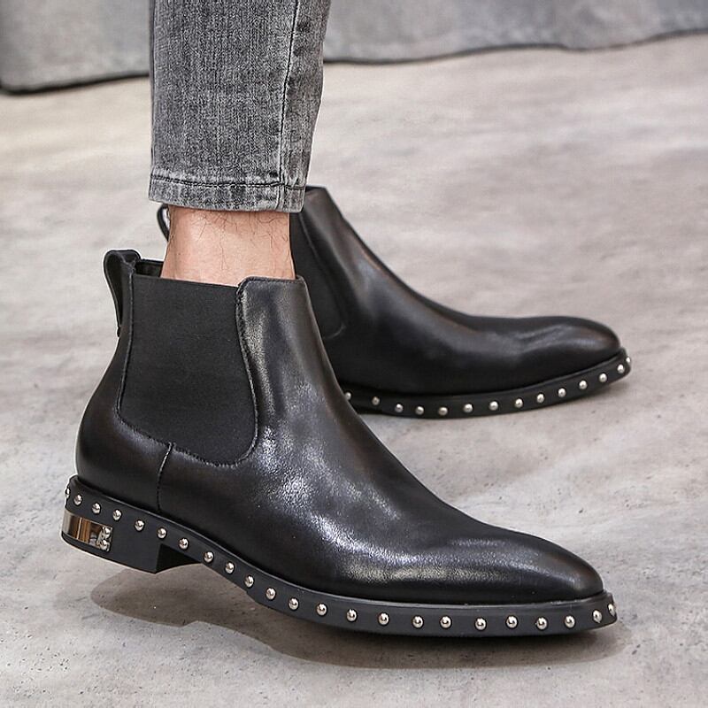 メタルリベット サイドゴア【韓流メンズスタイル】チェルシーブーツ