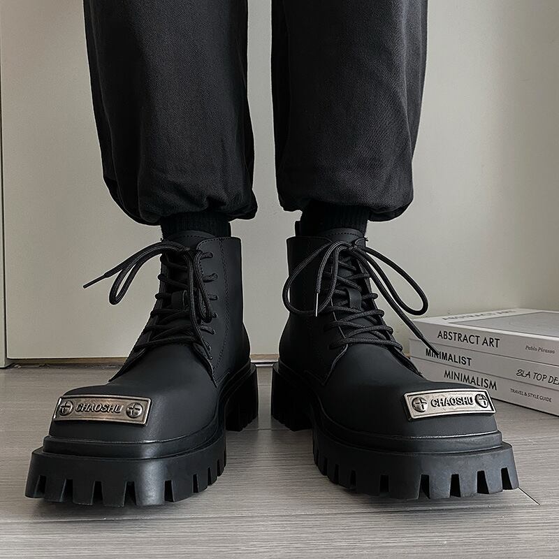 プレートレースアップショートブーツ【韓流メンズスタイル】チェルシーブーツ