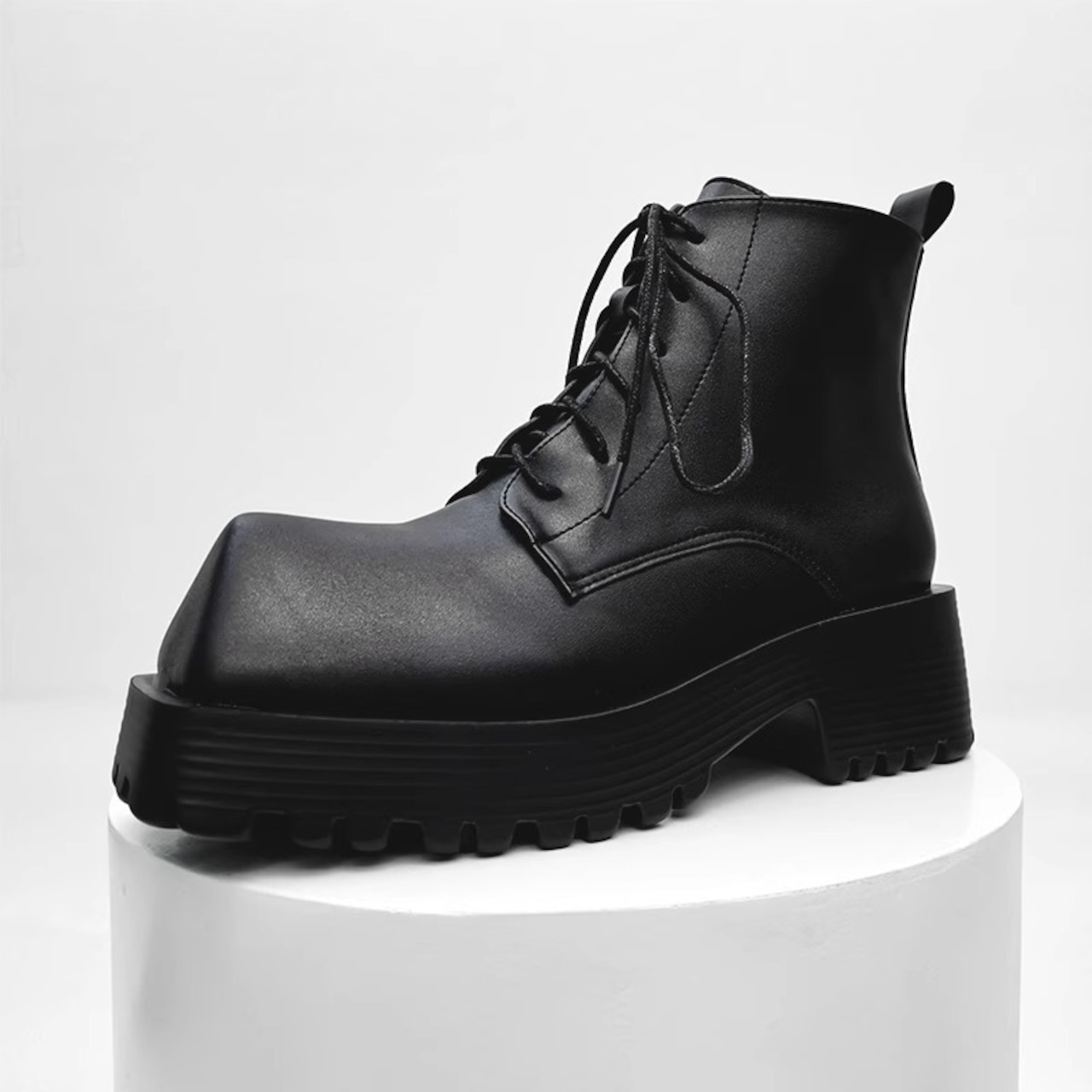 マーティンブーツ 厚底オートバイブーツ 【韓流メンズスタイル】ハイトップワークウェアレザーシューズ