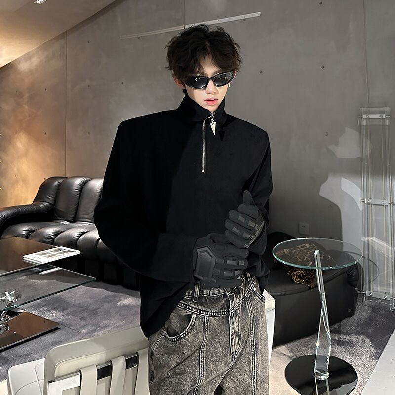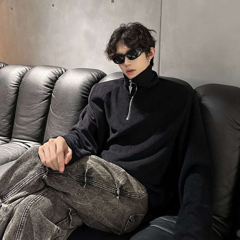 ハイネックカットソー【韓流メンズスタイル】肩パッド/ビッグシルエット