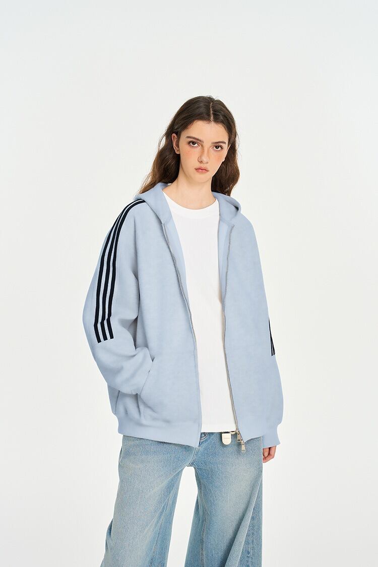 ヘビーウェイトスリーストライプフード付きスウェット【韓流メンズスタイル】カジュアルカップルジャケット