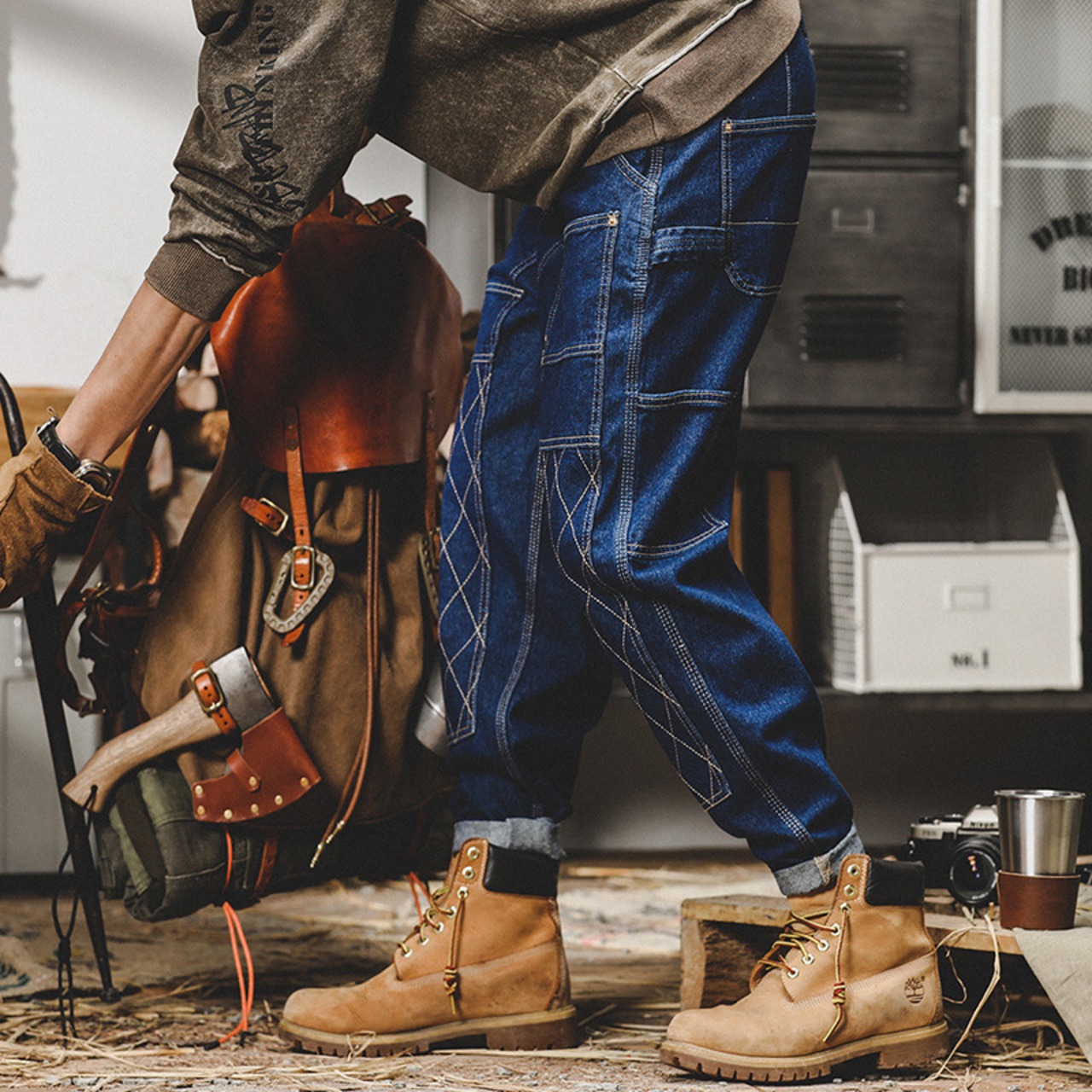 レトロインディゴ ダブルニー ワーク アメカジ デニム パンツ【韓流メンズスタイル】 ヴィンテージ