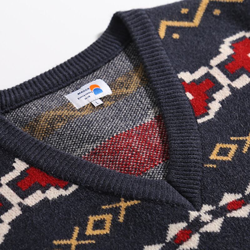 ネイティブジャガード柄ウール混 Vネック ニット ベスト 【韓流メンズスタイル】
