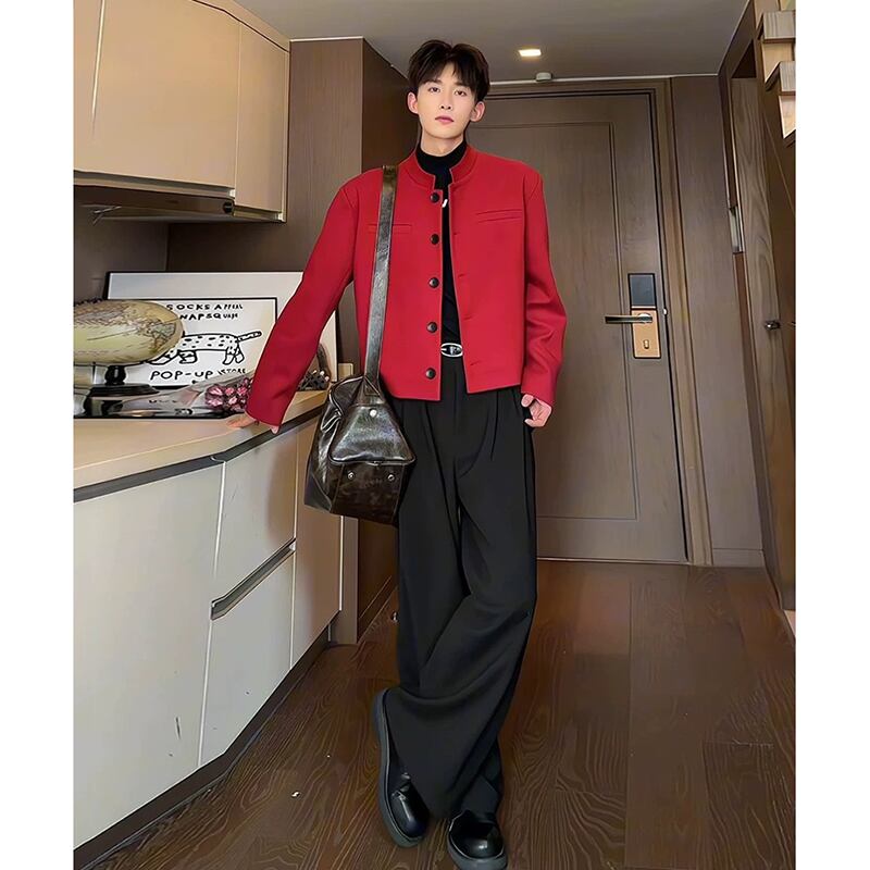 ショルダーパッド入りマッドカラーショートスーツジャケット【韓流メンズスタイル】