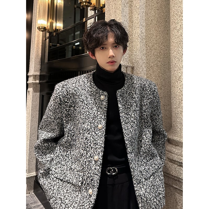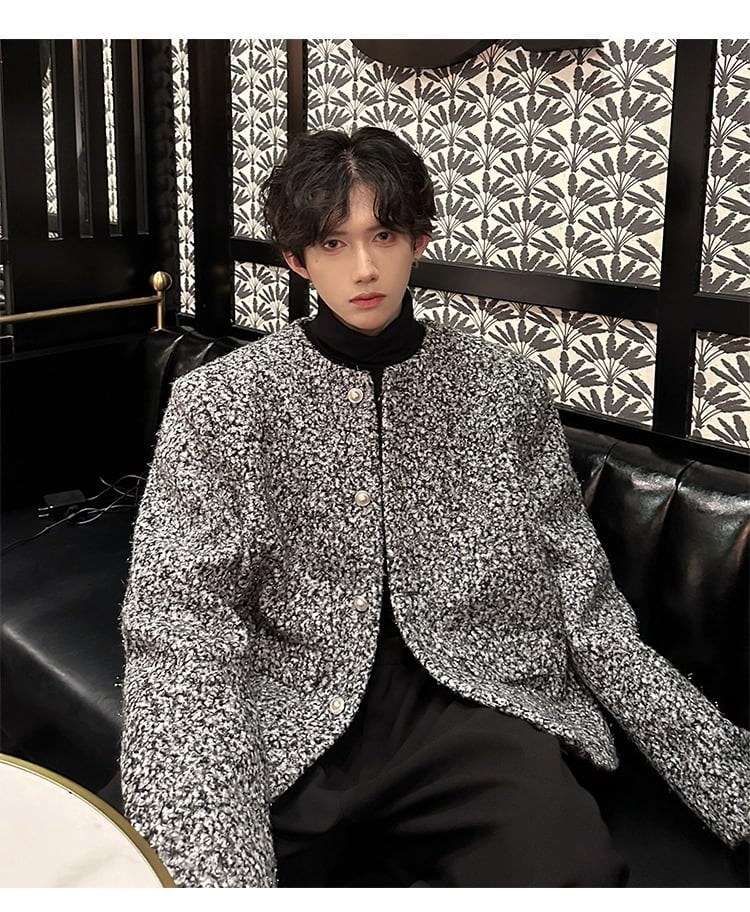ショルダーパッド入り、スモールフレグランス、ウール、ハイクラス、ショートスーツジャケット【超韓流メンズスタイル】